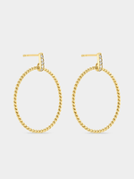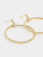 Expertly crafted in Gold Plated Sterling Silver, these elegant circle drop earrings feature a twisted rope design adorned by trios of pavé set Cubic Zirconia.