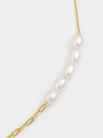 Expertly crafted in Gold Plated Sterling Silver, this beautiful oval link bracelet features a voyage of lustrous Freshwater Pearls.