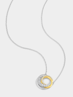 Expertly crafted in two-tone Gold Plated Sterling Silver, this beautiful overlaid circle pendant on a chain glitters with pavé set Cubic Zirconia.