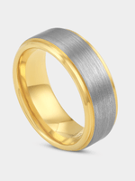 Expertly crafted in Gold Plated Tungsten, this stylish two-tone ring features a brushed centre finished with sleek stepped edges.