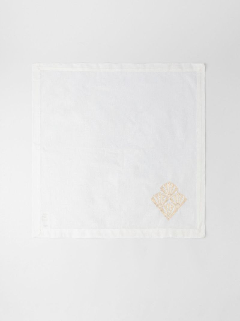 Elegant and sophisticated, bring a sense of occasion to any meal with Grace Selah Gold Embroidered Napkins. Made from 100% cotton, these classic fabric napkins feature a border with cut-out detail and a beautiful gold satin stitch embroidered edge. Combine it with the matching tablecloth for a cohesive table setting.