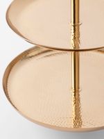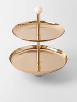 The Grace Charlotte 2 Tier Cake Stand brings a sense of occasion to tea time and snack tables. Handmade in India, this piece features gold-tone brass trays paired with a marble foot and knob, making it an elegant addition to your hosting collection or a thoughtful gift for someone else.