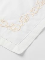 Elegant and sophisticated, bring a sense of occasion to any meal with Grace Selah Gold Embroidered Napkins. Made from 100% cotton, these classic fabric napkins feature a border with cut-out detail and a beautiful gold satin stitch embroidered edge. Combine it with the matching tablecloth for a cohesive table setting.