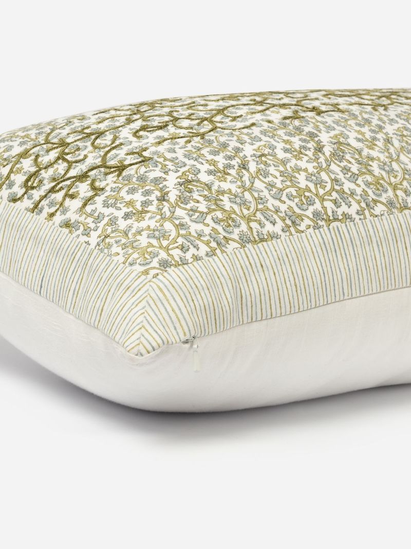 Add decor details to your bed or sofa with this rectangular block printed lumbar pillow.