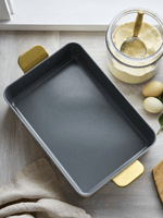 Deep and spacious, this lasagna pan is ideal for crafting casseroles, desserts, roasting, and big one-pan meals. The cast solid handles are clean, simple, and functional while the heavy-duty body heats quickly and evenly, eliminating hot spots and offering total control over the meal.
