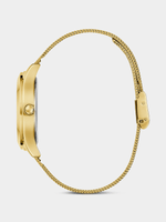 Sure to be a staple in your watch wardrobe, this style features a polished case with a glitzed out dial and a triangle logo plaque. Paired with a sleek self-adjustable mesh bracelet.