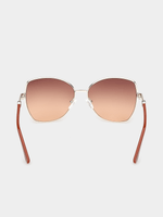 Large Elegant Butterfly shape, Shiny Pale Gold frame, Brown gradient lenses, iconic "G" logo on the non-slip temples. UV400 protection. Brand case & cloth included