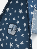 • Kd 220x1900mm. dark blue with white star uneven big and small koopman design. inside grey and grey stripe. with assembly instruction