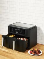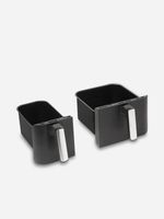 Cook a full meal quickly and easily with the Haden Dual Air Fryer 9.5L. This two-basket air fryer has one smaller 3.5L basket and a larger 6L basket, perfect for cooking two dishes at once. The smaller basket is ideal for sides while the larger is big enough for a family main. Use the convenient presets or set individual temperatures and times for each basket. The sync and match function makes sure both dishes finish cooking at the same time.