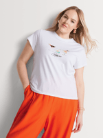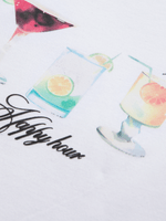 Baby tees are a must-have style this season. Update your tee collection with our Happy Hour Baby Tee. Fitted, with a classic crew neck and short sleeves, it's perfect for pairing with wide-leg pants, denim and skirts.