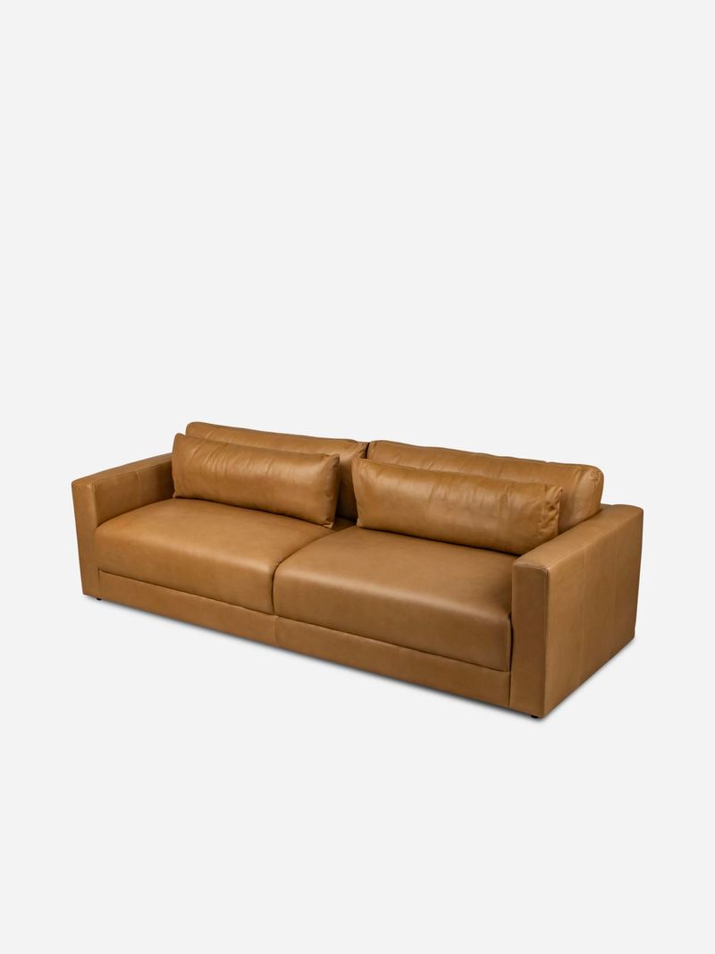 Designed for durability and long-lasting enjoyment, it's locally manufactured with exceptional craftsmanship and upholstered in full-grain leather. Our high-quality full-grain leather is durable and retains the material's naturally occurring texture and graining. Each hide is unique and will age and soften over time, bringing a lived-in feel to your couch.