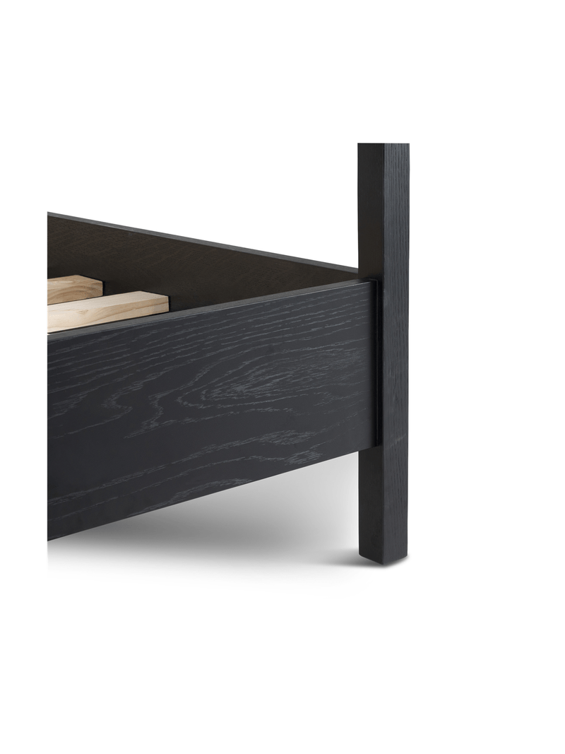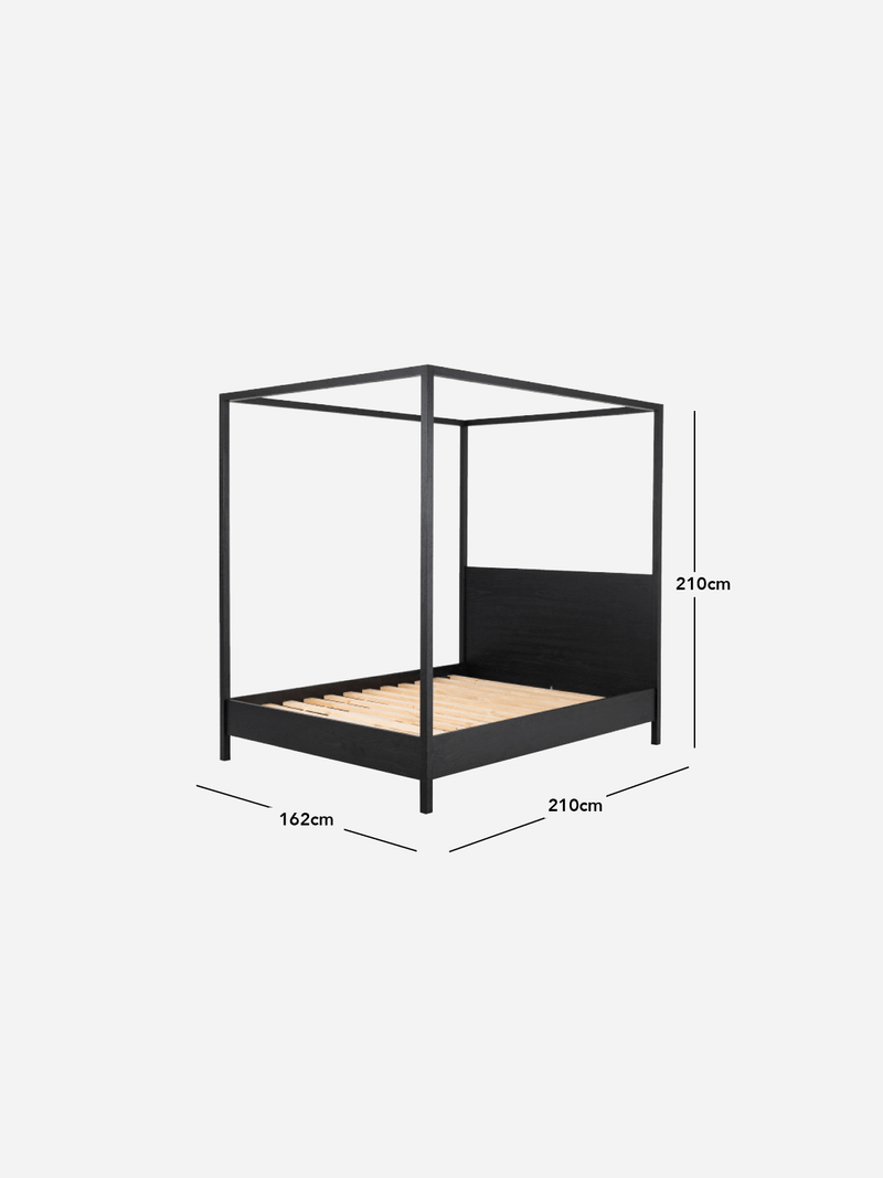 The Haven four poster bed frame brings a refined sense of luxury and understated style to your bedroom with clean lines and a contemporary design. Locally crafted from solid oak wood with oak veneer, the spacious push-to-open drawers bring a luxe feel to the piece.