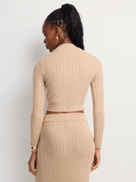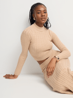 Our Co-Ord High Neck Cable Knit Jersey is a versatile addition to your winter wardrobe. Wear it with the matching bottom for a cute co-ord set, or pair it with a denim mini for a different look.