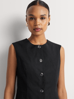 Suiting-inspired styles remain on the fashion agenda. Wear our on-trend High Round Neck Linen Blend Waistcoat with linen-blend wide leg pants and chic flats for a relaxed yet elegant look. Add classic jewellery and a minimalist handbag.