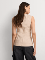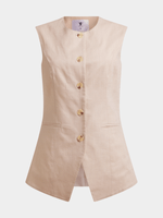Elegant and stylish, our High Round Neck Linen Blend Waistcoat brings effortless sophistication to your look. Wear it with barrel jeans and caged sandals for a dressed-down take, or elevate it with wide-leg trousers and heels.