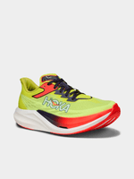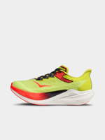 Built for achieving your personal best, the Rocket X 3 delivers a carbon-fiber super shoe that doesn’t skimp on support. Maintaining the same responsive, high-performance foam as its predecessor, we’ve updated our pace-pushing carbon fiber plate with new winglets and employed a sticky rubber outsole to inspire confidence in variable conditions.