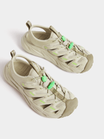 A true outdoor explorer, the Hopara easily navigates through any terrain — wet or dry. Designed through the HOKA lens, this shoe will blow other mountain sandals out of the water. The Hopara has a synthetic upper with strategic cutouts for drainage while still providing a secure lockdown. It includes a neoprene collar for flexibility and comfort plus a quick-lace system. Providing a responsive yet cushioned feel thanks to a rubberised EVA midsole, the Hopara also features a rubberised toe cap for protection and a sticky rubber outsole for traction in a variety of conditions. Add in 4mm multidirectional lugs for even more grip and the Hopara is your key to adventure.(Supplier Style:1123112OYST)