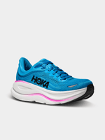 One of the hardest working shoes in the HOKA lineup, the Bondi 9 delivers peak plushness for everyday miles. Overhauled from top to bottom, we’ve increased the stack height and added a new premium foam midsole to deliver that soft, resilient ride that’s become synonymous with the Bondi. Elevated with a 3D molded collar and structured knit upper with zonal breathability, this ultra-cushioned cult favorite has been finished with Durabrasion rubber to combat high wear zones.