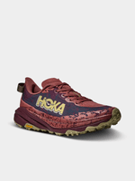 A grippy, responsive ride for technical terrain. There’s only one GOAT on the trail. And this is it. Combining HOKA’s tried and true cushioning with aggressive traction and ultralight materials, the Speedgoat 6 was born to tame the trail. A workhorse for technical terrain, this recent reissue was refined with a breathable woven textile upper, foot-hugging internal chassis, plusher dual gusset tongue, and revised lug orientation inspired by the hoof of a goat (what else?)