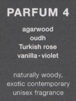 Parfum 4 is a unisex fragrance crafted with high-quality imported ingredients. The scent profile features a sophisticated blend of agarwood and oudh, complemented by the floral notes of Turkish rose. Undertones of vanilla and violet add depth to this contemporary aroma. Each ingredient is sourced from renowned fragrance houses globally, ensuring a unique and exotic olfactory experience. Modern Soul Parfum 4 embodies a naturally woody essence, designed for those who appreciate a modern, yet timeless scent.