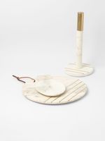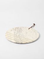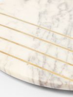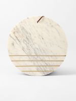 Bring classic style to your snack platters with the @home Striped Marble Cutting Board. This elegant white marble board features delicate brass inlay for a luxurious touch.
