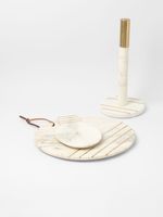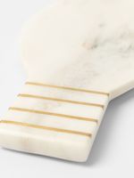 Bring classic style to your countertop with the @home Striped Marble Spoon Rest. Made from elegant white marble, it features delicate brass inlay for a luxurious touch.