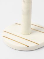 Bring classic style to your countertop with the @home Striped Marble Towel Holder. Made from elegant white marble, it features delicate brass inlay for a luxurious touch.