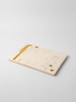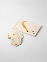 Bring a charming touch to the table with the Honeycomb Marble Cheese Board & Knife Set. Handcrafted in India from white marble, it features a beautiful honeycomb pattern etching with gold-tone honey bee detail and a cheese knife that fits perfectly into a groove in the board.
