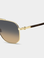 These BOSS sunglasses conquer at first glance. It’s all thanks to the metal frames with a caravan shape and a detailed double bridge with an engraved ‘BOSS’. The temples feature the iconic horizontal motif and the new BB logo, which is seen on the brand's entire line of accessories. Comfort is guaranteed by long acetate end tips, adjustable nose pads, and the option to fit the frames with prescription sun lenses. Comes with a protective case or Soft pouch