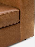 Huxley is fully upholstered in high-quality full-grain leather that is durable and retains the material's naturally occurring texture and graining. Each hide is unique and will age and soften over time, bringing a lived-in feel to your couch.