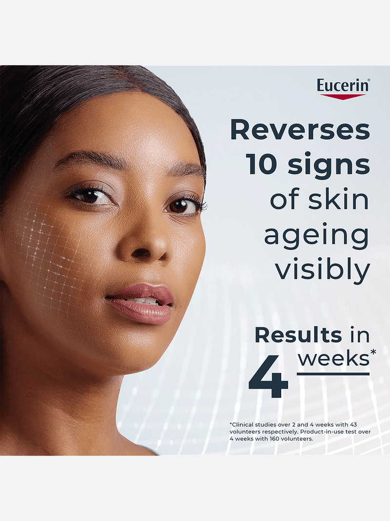 A revolutionary anti-aging serum with Epicelline® that visibly reverses signs of aging and reactivates the skin’s youth genes for visible results in 4 weeks (Product-in-use test with 160 women over 4 weeks).