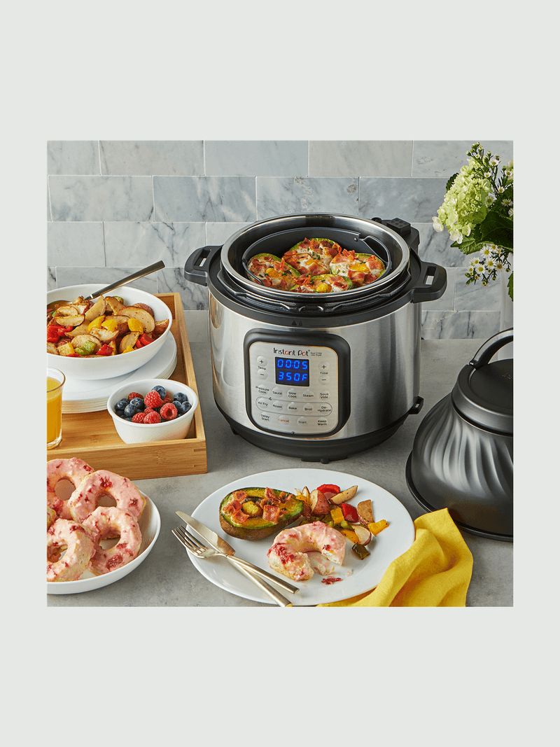 The Instant Pot Duo Crisp & Air fryer is the best of both worlds. With 11-in-1 functionality it does everything a regular Instant Pot does, but swap out the pressure cooker lid for the innovative air fryer lid, and you’ve got a whole new set of cooking techniques available — all fast, easy and at the touch of a button. The pressure cooker lid offers 6 wet cooking functions: use it to quickly pressure cook, sauté, steam, slow cook, sous vide and warm. The air fryer lid offers 5 crisp cooking functions: use it to quickly air fry, roast, bake, broil and dehydrate.