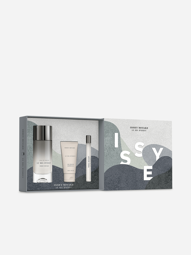 Discover the perfect holiday gift with Issey Miyake's Le Sel d'Issey giftset, designed in collaboration with Philippe Apeloig. This set includes: