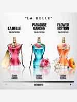 The fruit of a thrilling imagination, La Belle Flower Edition is the most fascinating flower in Jean Paul Gaultier’s psychedelic jungle. This limited-edition fragrance with its majestic jewel of a case in dazzling acid colours conceals a bewitching and addictive feminine fragrance. Supernatural beauty blossoms within the lush pink and white case. Luminous petals of an unparalleled floral creation adorn the shoulder of this bottle and stir the passions. Is it the bold juicy apricot, the irresistibly voluptuous jasmine and magnolia, or the exuberant vanilla that so captivate the senses? Intense and fanciful, in this garden of pleasures desire cannot be tamed.