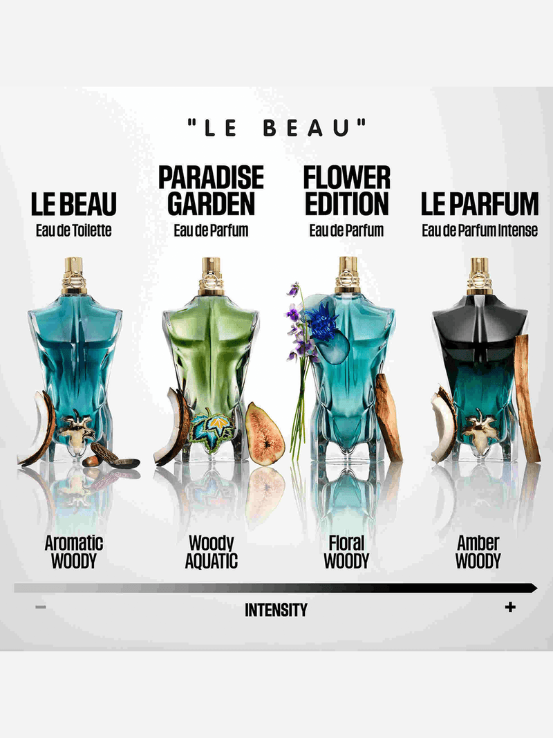 For this limited edition only, Le Beau Flower Edition transports us to a fantastical Garden of Eden where mysterious, bewitching flowers ecstatically provoke and arouse the senses. Its power of attraction is such that it rises our sap to dangerously seductive and outrageous levels of desire. Dazzling and subliminal, this is passion at its most intense in the naked fantasy of an azure-green bottle beneath a phosphorescent blue case. On his shoulder, a fascinating sculpted ephemeral flower entices you to pluck temptation on sight. This shamefully indulgent fragrance of decadent kumquat, intoxicating violet and seductive cashmeran captivates with the intensity of its unforgettable sensuality. Perhaps you only dreamt it? Only Jean Paul Gaultier knows for sure.