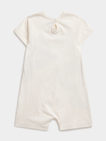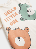 Introducing the Jet Ecru Hello There Bear Romper, perfect for your little one. Made with soft, durable fabric for ultimate comfort. Features an adorable bear print and easy snap closures for quick changes.