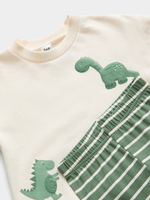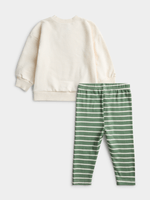 Introducing the Jet Baby Green Stripe Crew And Legging Set! Made from comfortable cotton, this set features a stylish green stripe design. Perfect for everyday wear, it is both fashionable and functional.