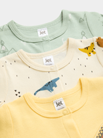 Introducing Jet Baby Boy Multi Pastels Dino 3 Pack Sleepsuits for cozy nights! Made with soft fabric for comfort. Features playful dino designs. Easy to wash and care for.