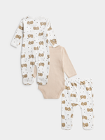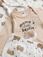 Stay cozy with our Jet Baby cream/stone 4 piece set featuring adorable sleeping bears print. Made for comfort and style with high-quality fabric. Perfect for a good night's sleep or lounging around.