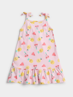 Dress your little one in style with this adorable light pink all-over print fruit strappy dress from Jet.