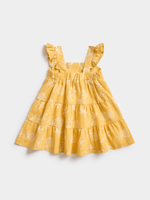 Introducing the Jet Baby Yellow Hibiscus Tiered Dress, perfect for any occasion. Made from linen for ultimate comfort.