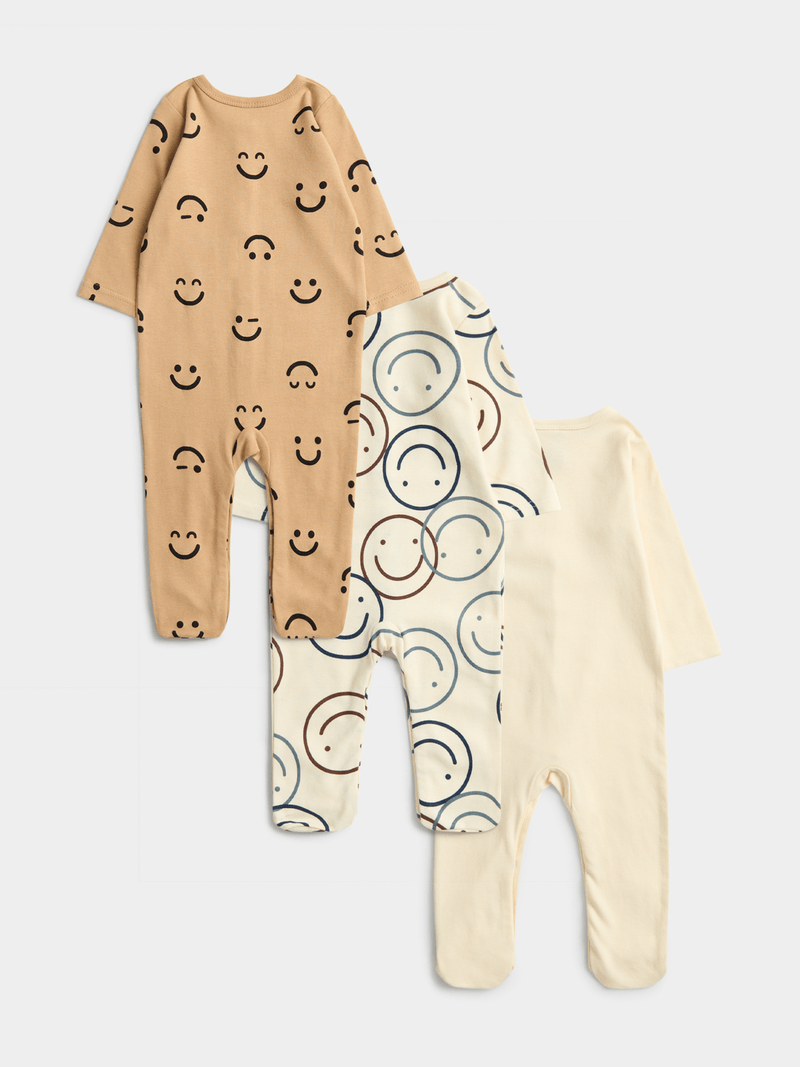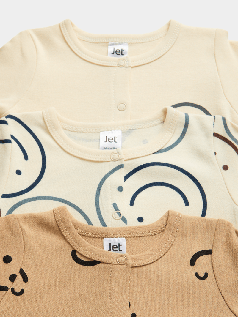 Introducing Jet Baby's Multi AOP Smiles 3 Pack Sleepsuit! Made for comfort and style, featuring adorable smiley face prints.