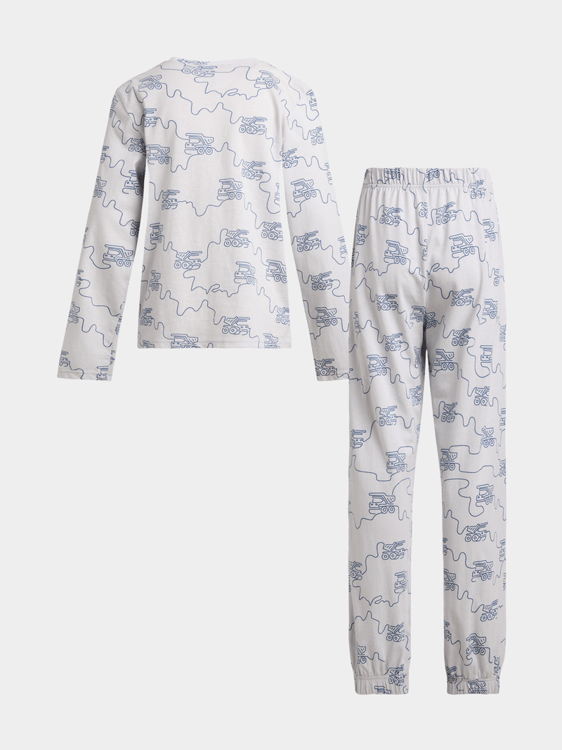 Get ready for some cozy nights with our Jet Grey Truck Drawing Long Pyjama Set. Made from soft cotton, this set features a fun truck print on the top and comfortable long pants.