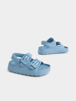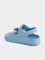 Introducing the Jet Boys Toddler Blue Eva Sandal, perfect for little feet on the move. Made from durable EVA material, these sandals are both comfortable and easy to clean. With a simple yet stylish design, they are versatile for any occasion. Designed to keep your little one's feet happy all day long.