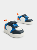 The Jet Boys Toddler Navy Orange Court Sneaker is perfect for active little ones. Made of durable polyurethane, these sneakers are stylish and comfortable for all-day play. With vibrant navy and orange colors, they'll be the envy of the playground. Grab a pair for your little trendsetter today!
