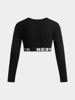 Introducing our Jet Black Tape T-shirt, perfect for the younger set. Made from 100% cotton for all-day comfort. Versatile long sleeves and classic black color.