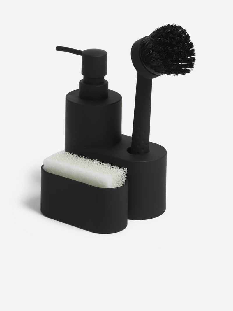 Get organized with the Jet Home Sink Caddy! This sleek black caddy comes with a brush and sponge for easy dishwashing. Keep your sink area tidy and stylish with this must-have accessory. Made for convenience and practicality, this caddy is a game-changer for your kitchen chores.