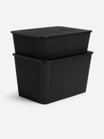 Introducing Jet Home's black storage container with lid, a versatile solution for organizing your belongings with ease. Made from durable plastic, this container is designed to keep your items secure and easily accessible.
