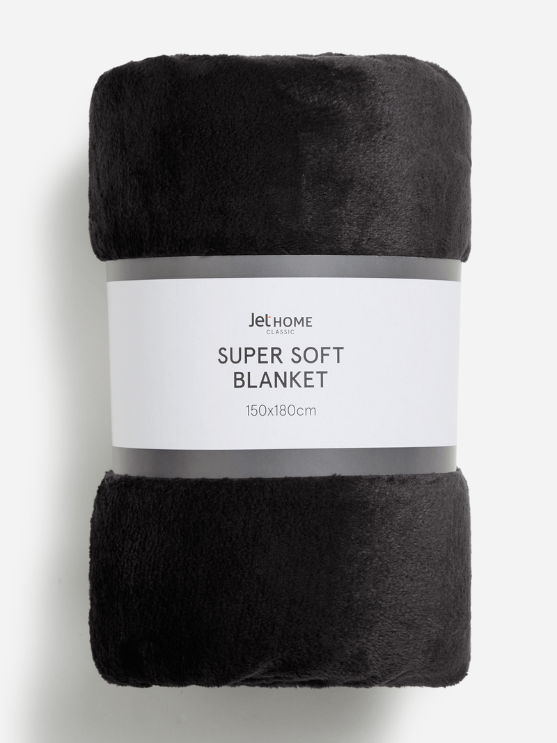 Introducing the Jet Home Black Super Soft Blanket, measuring 150x180cm. Made from cozy flannel, this blanket is perfect for keeping you warm and comfortable. Wrap yourself in luxury and relax in style. Perfect for adding a touch of sophistication to your home decor.