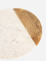 Introducing the Jet Home Round Cheeseboard, a beautiful blend of natural carved wood and white marble. Perfect for serving cheese and charcuterie with style. Features a sleek design that is both elegant and functional. A must-have for your next gathering.